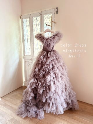くすみ系ラベンダーグレージュカラーのドレスや深みのあるバーガンディ(Burgundy)カラー取り扱いしております。